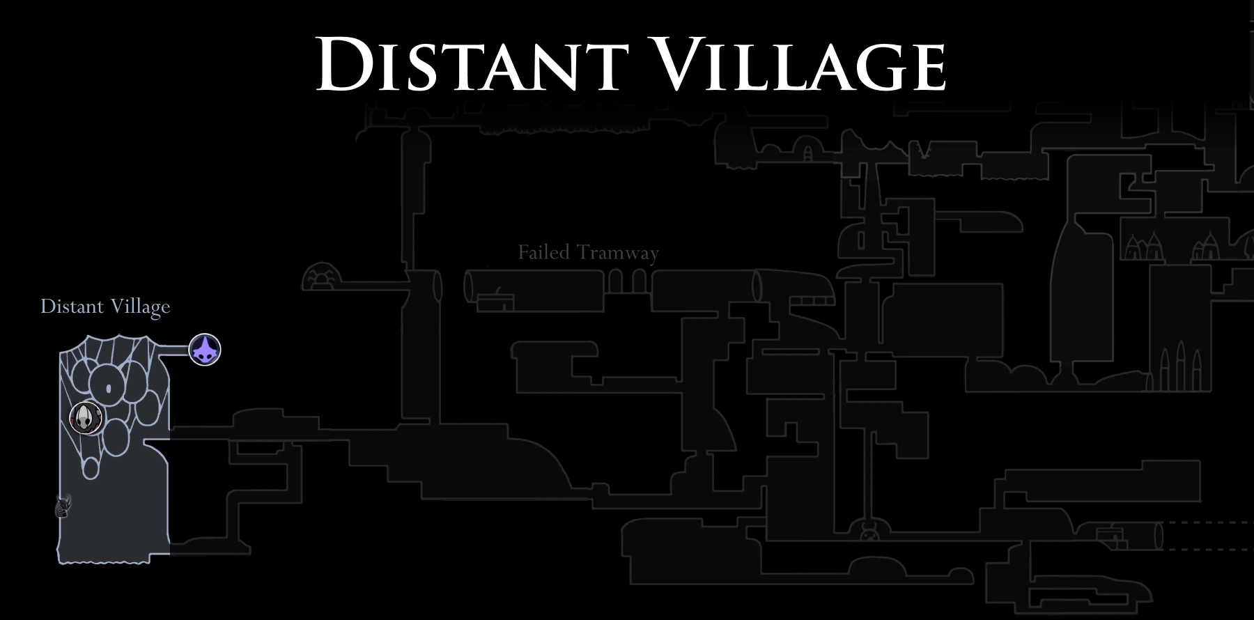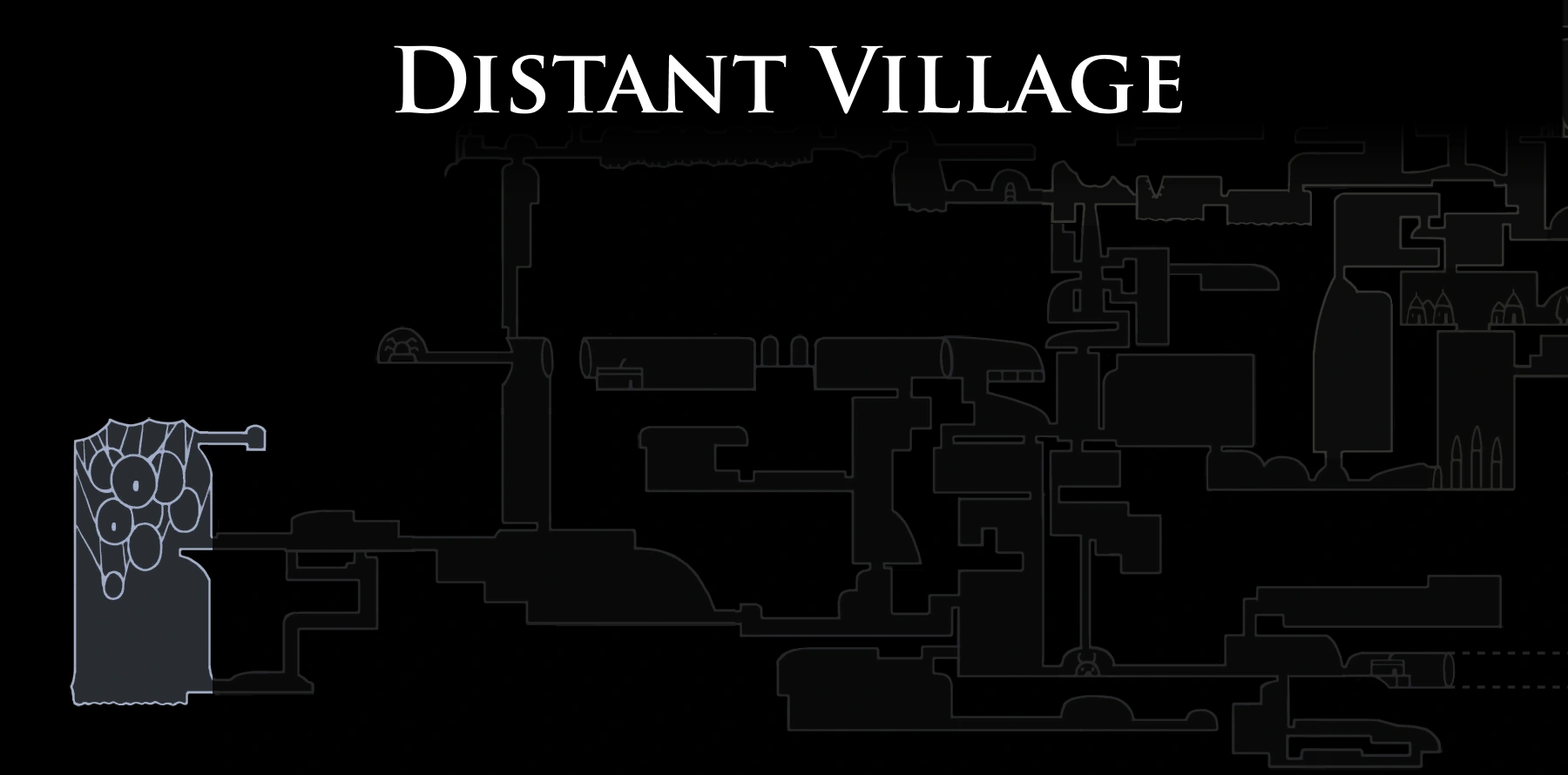 Uma grande caverna cheia de teias contendo várias estruturas suspensas sobre uma piscina de água. A aldeia em si está quase abandonada.[3] A maior construção contém o Covil Da Besta em seu interior. Um dos corpos do casulo menor faz referência aos Aldeões Distantes em seu diálogo com o Ferrão dos Sonhos.[14]