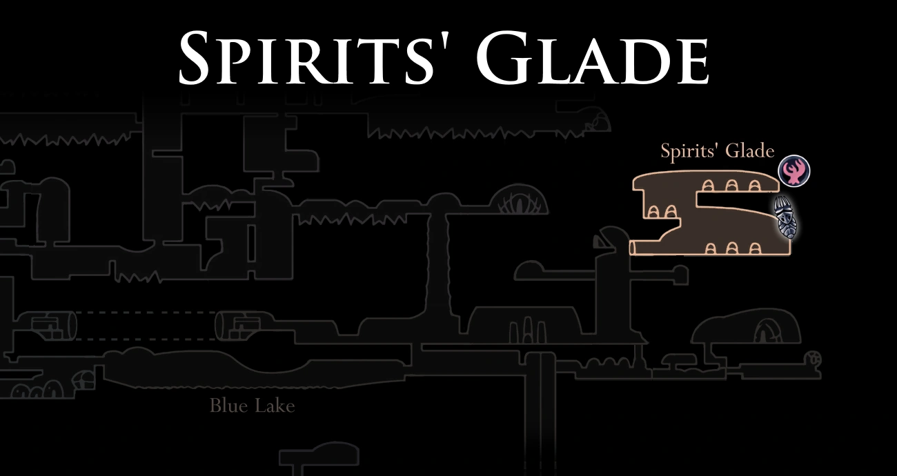 Escudo dos Sonhos. Em frente a essa sala há uma Estação de Besouro. Acima, há a entrada para a Clareira dos Espíritos, que pode ser aberta após a coleta de 200 Essências.