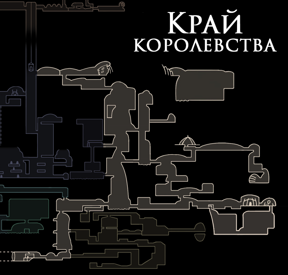 | Белый дворец | Божий кров | Воющие утёсы | Глубинное гнездо | Город слёз | Грёзы | Грибные пустоши Грязьмут | Древний котлован | Забытое перепутье | Зелёная тропа | Земли упокоения | Колизей глупцов Королевские стоки | Край королевства | Кристальный пик | Сады Королевы | Туманный каньон | Улей |