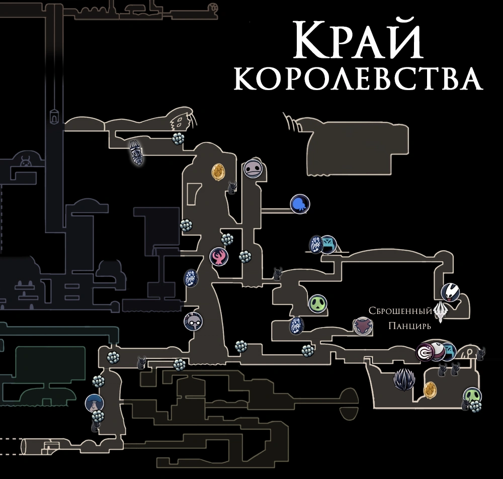 Оболочка огромного черва, чей труп медленно разлагается, а белые хлопья покрывают весь Край королевства. Здесь герою предстоит второй раз сразиться с Хорнет, после чего он сможет пройти в оболочку и получить тавро Короля.