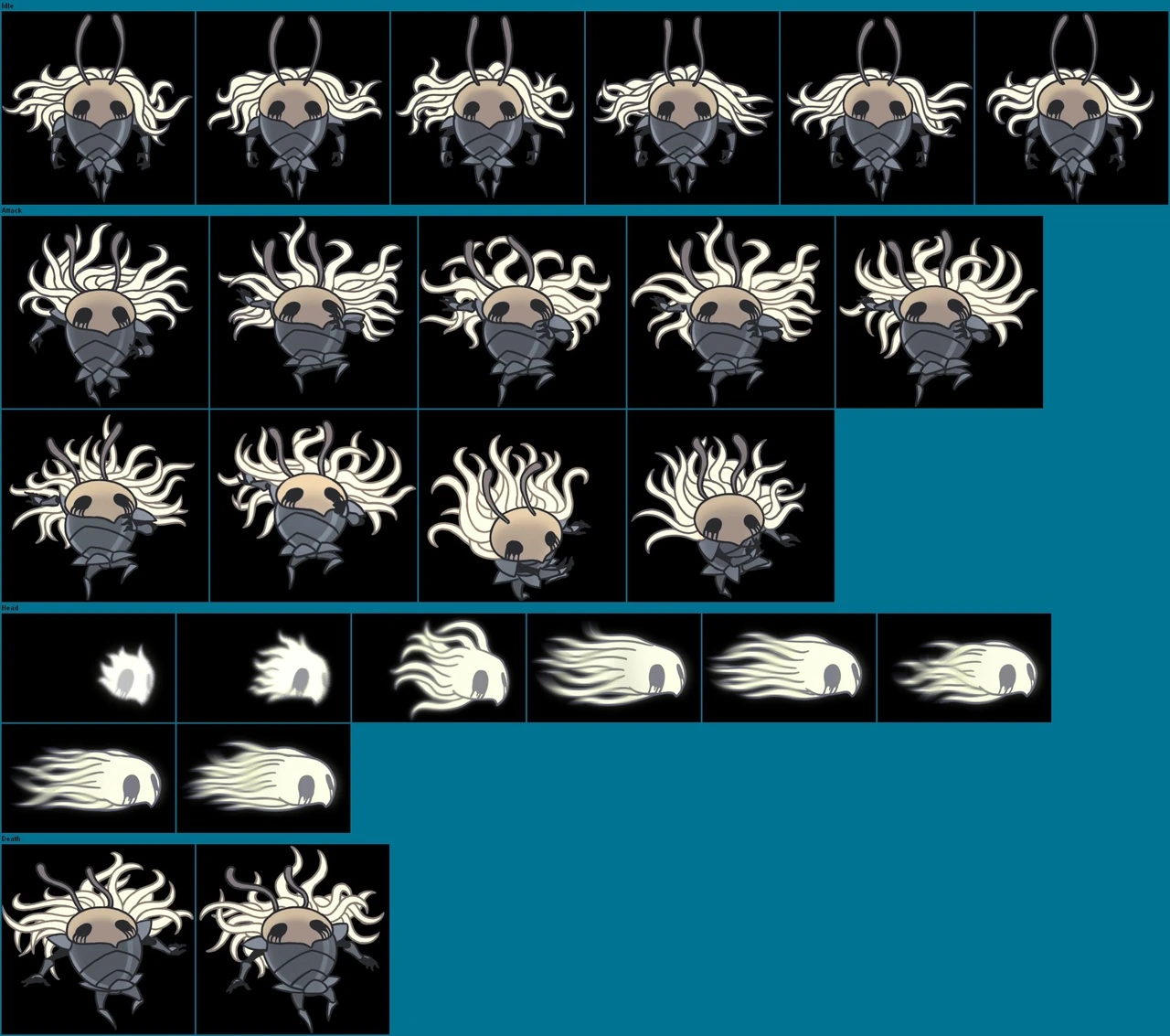 - Судя по неиспользованным спрайтам Незрячей и её призраков, у босса была ещё одна атака: она делала взмах рукой, тем самым материализуя призраков.
