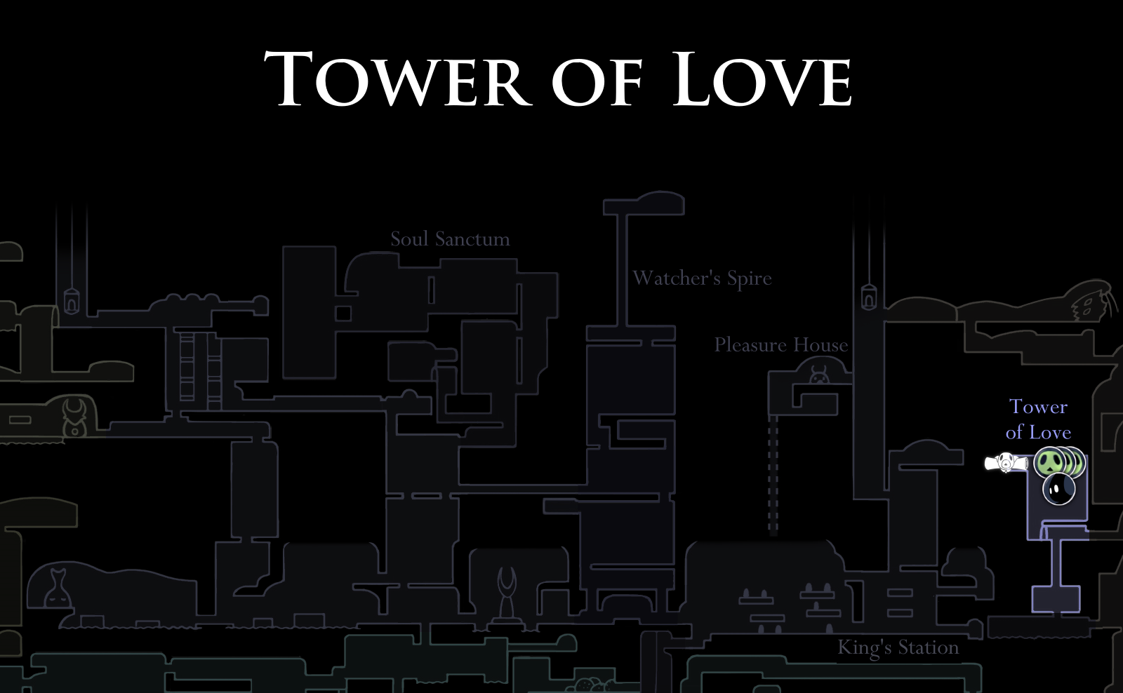 Home of Lurien the Watcher, one of the Dreamers sealing the Black Egg and the Hollow Knight inside. At his side, his butler can be found. Lurien must be killed to complete the game, but reaching him is no simple task as the way is barred by his elite guards, the Watcher Knights.