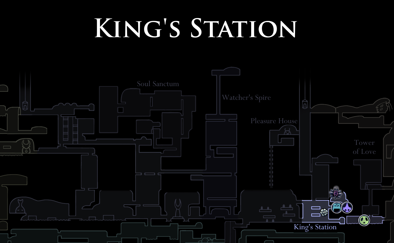 The Tram can be used to reach Kingdom's Edge, which has an access point to King's Station on its west side. Lastly, the city can be reached by going to the Resting Grounds and taking the lift there which leads to the east part of the City of Tears.