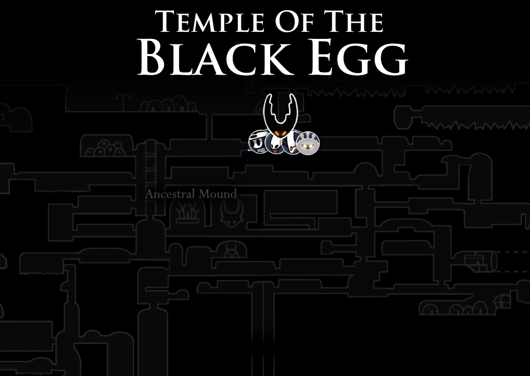 The Temple of the Black Egg is located near the entrance to the well in Dirtmouth in the northeast of the area. Two bosses can be fought within, the Hollow Knight and the Radiance. Quirrel can also be encountered here. In the northwest of the area is Grubhome, home to Grubfather.
